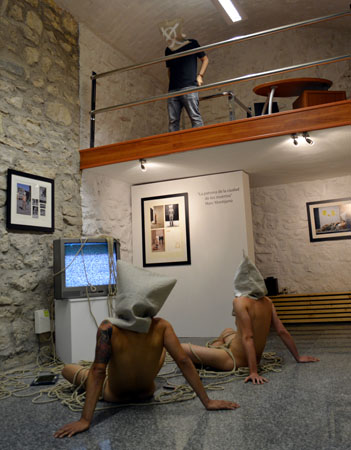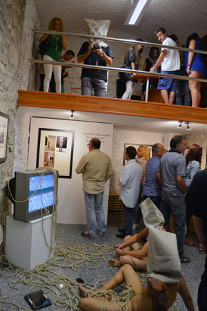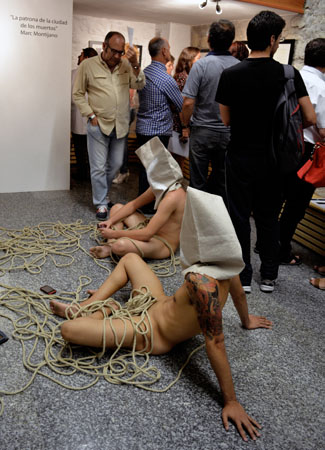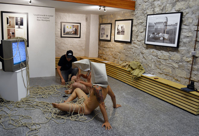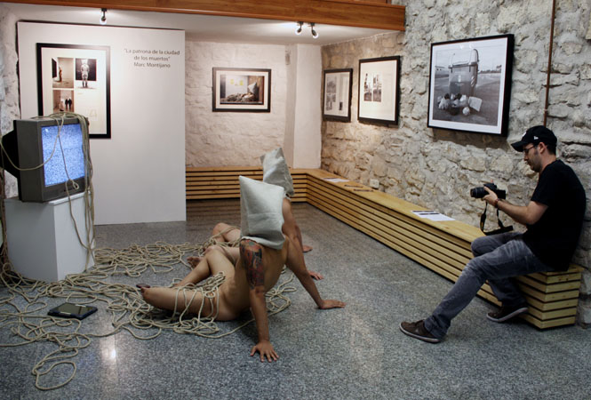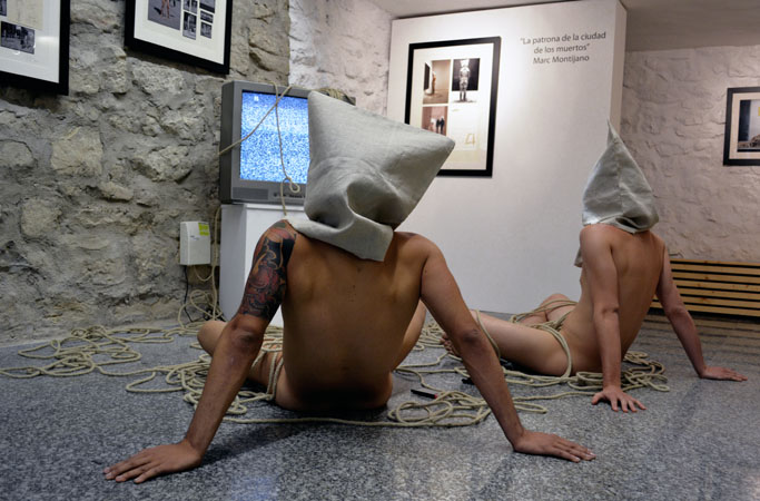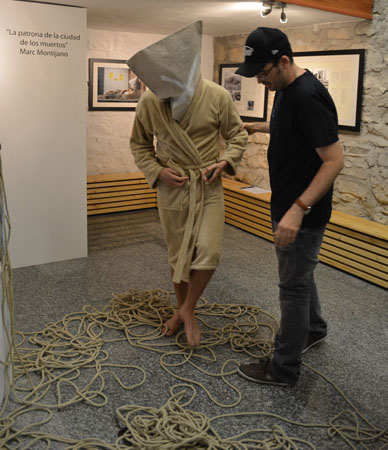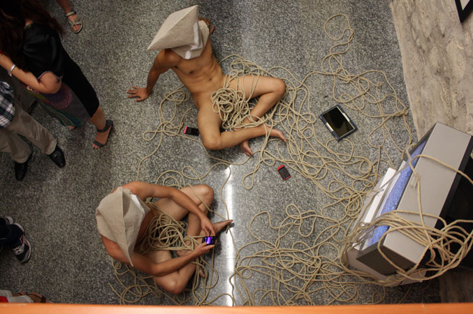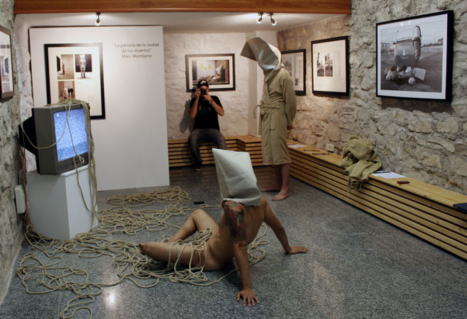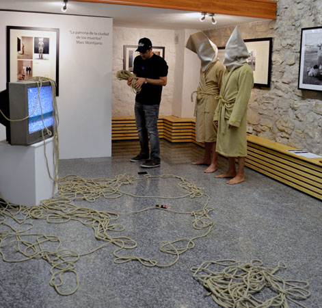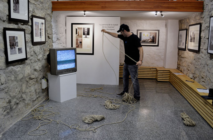la ciudad de los muertos La televisión y, sobre todo, internet con el desarrollo de las redes sociales y la generalización de los smartphones, se han convertido en el eje de nuestra sociedad, marcando nuestras pautas de conducta. La tecnología nos conecta, nos entretiene y nos informa, pero también nos controla, nos manipula, nos idiotiza y nos aísla de lo cercano y verdadero. Con esta acción, he querido reflejar un retrato de cualquier grupo humano actual, un pequeño altar de aislamiento tecnológico rodeado de comunicación. El ser humano se aísla de si mismo y de su entorno cercano para conectarse globalmente. |