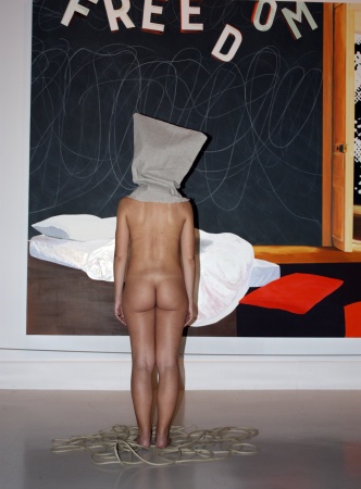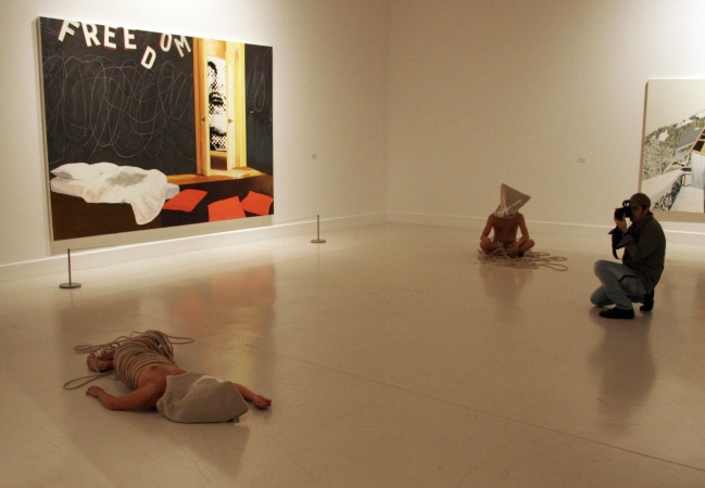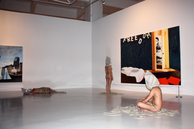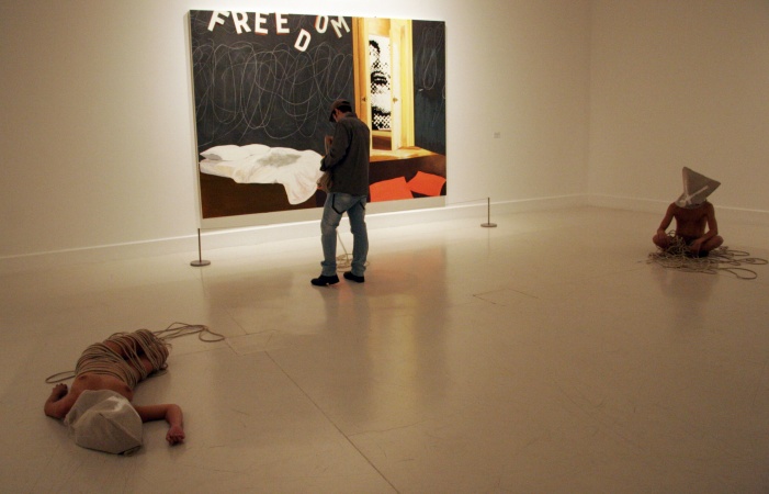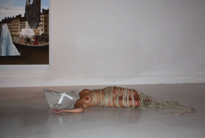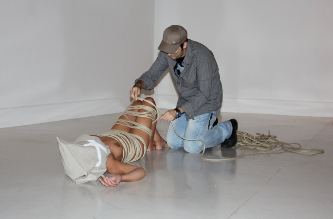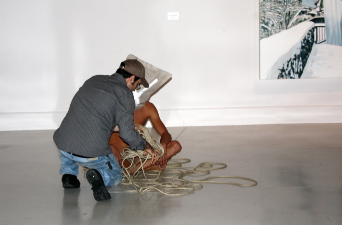 que caracteriza sus creaciones: desnudos, rodeados de cuerdas y con el