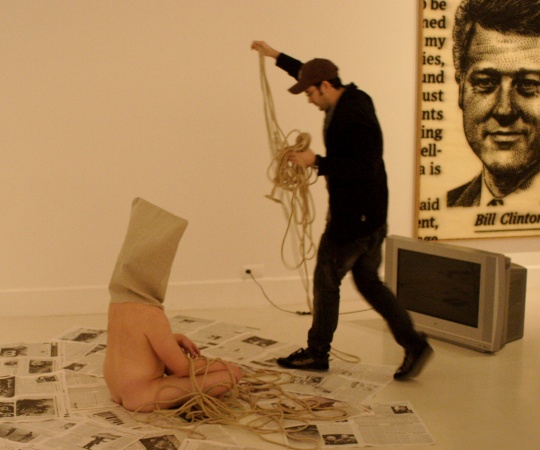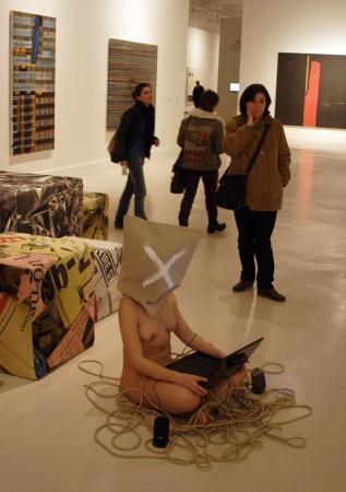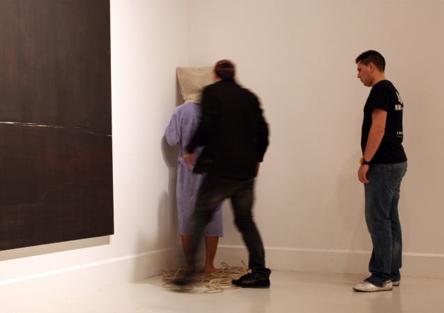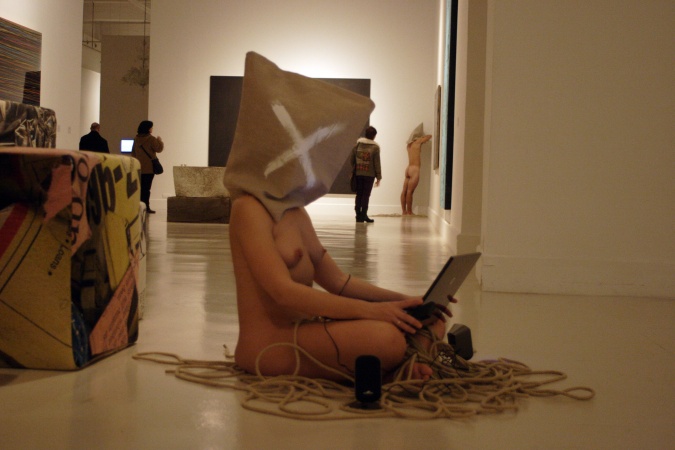 semillas ya están germinando. Metamorfosis VI En este trabajo a través de sus característicos personajes en estado de metamorfosis, sale a la luz la problemática del mundo árabe. Habla de la incomunicación, de la sociedad represiva, de la falta de libertad, y por otra parte del despertar de una sociedad que está abriendo los ojos y empujando con fuerza. Y en ese despertar juega un papel fundamental internet, el contraste entre la información manipulada y la información libre, e incluso la música, la primera en atreverse a criticar al poder. El artista intervino en cinco puntos de la exposición Pasión. Colección Carmen Riera del Centro de Arte Contemporáneo de Málaga, creando su obra entre piezas de Louise Bourgeois, Cristina Iglesias, Juan Muñoz o Andy Warhol. Marc Montijano fiel a su característico universo creativo, dispuso a un grupo de modelos desnudos, con el rostro cubierto y rodeados de cuerdas, para plantearnos una serie de cuestiones sobre el mundo árabe. En este trabajo tuvo cabida por primera vez el sonido y los límites entre performance, intervención e instalación se fusionaron más que nunca. Texto: Susana Hermoso-Espinosa García |