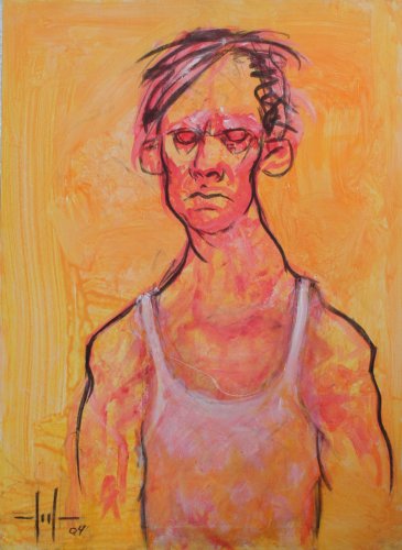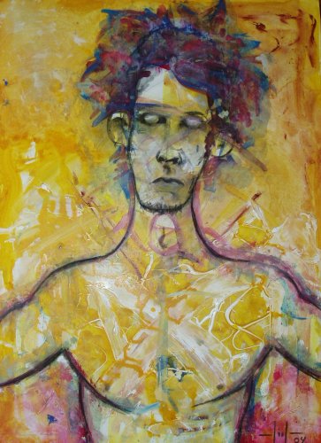 alma (2003-2005) Retratos del Alma es la primera serie cerrada que realicé, con una unidad y con una dinámica de trabajo intensa. Hasta ese momento había hecho ensayos individuales, pruebas sueltas y muchos dibujos, miles de ellos. Pintaba y dibujaba cuando el tiempo y las circunstancias me lo permitían, a partir del 2003 todo cambia, el resto de actividades pasan a un segundo plano. El arte se ha cobrado su precio. La chispa se prende en un momento personalmente duro. Por fortuna, el arte me sirve de refugio y me ayuda a renacer. A través del pincel expulso de mí la rabia, la impotencia, la tristeza, y poco a poco esa energía negativa que me ahoga va transformándose en esperanza y me permite ver el mundo con una mirada más pura. Hace tiempo anhelaba ser uno más y durante años luche por serlo. Luché hasta que una puñalada fría y silenciosa, de quien menos me los esperaba, me hizo cambiar de rumbo. Sin saber aún porqué, el capitán de mi barco me ató de pies y manos, y me arrancó el futuro justo antes de ser presente. Y aunque podía gritar no lo hice, me quedé callado mirando como subía la marea y borraba todo lo que había escrito en la arena durante años. Texto: Marc Montijano Cañellas |