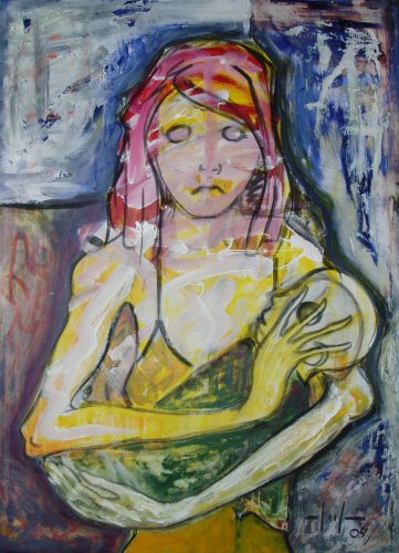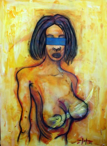 y carboncillo sobre lienzo, 100 x 73 cm., 2004. Col. del autor. |